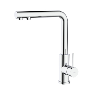 Хромированный смеситель Rule с каналом для фильтрованной воды – премиальный востребованный дизайн и функционал по адекватной цене. • Отдельный аэратор для питьевой воды – нет смешения с водопроводной, полная безопасность. Фильтр в комплекте не идет и приобретается отдельно. • Изысканная ручка-джойстик – для включения обычной и фильтрованной воды. Угол открывания ручки – 90 градусов (45 градусов от себя – холодная вода, 45 на себя – горячая). Чтобы налить фильтрованной воды, нужно просто повернуть ручку в закрытом состоянии. • Смеситель прослужит долго благодаря корпусу из прочной нержавеющей стали, которая не влияет на состав воды, стойкой к коррозии, резким изменениям давления и перепадам температуры воды. • Покрытие устойчиво к появлению царапин и потускнению (при должном уходе). На протяжении многих лет оно будет выглядеть как новое. • Мягкий силиконовый аэратор для водопроводной воды легко очищается от извести – достаточно провести по нему пальцем. Гарантия на смеситель IDDIS® — 10 лет. (с) Авторский текст, март 2023 г.