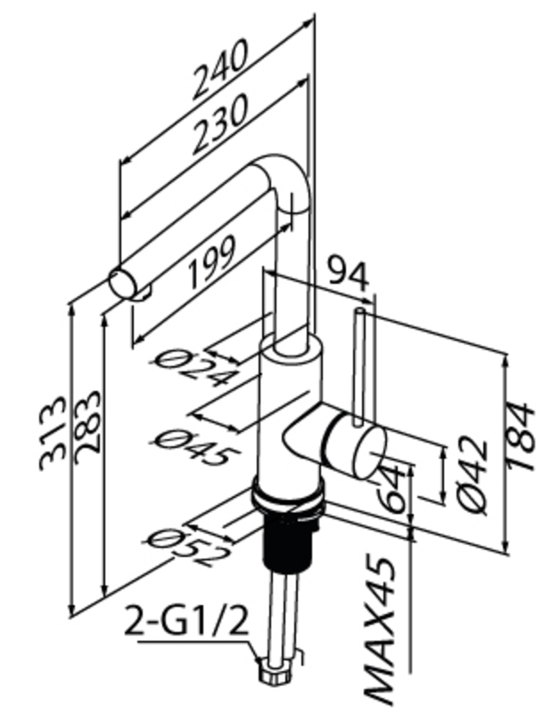 2. 994RULST0SM | Ручка для смесителя, Rule, 35 мм, сталь | |