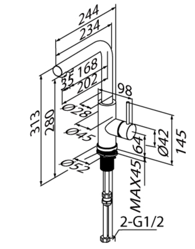 2. 994RULB0SM | Ручка для смесителя, Rule, 35 мм, черный | |