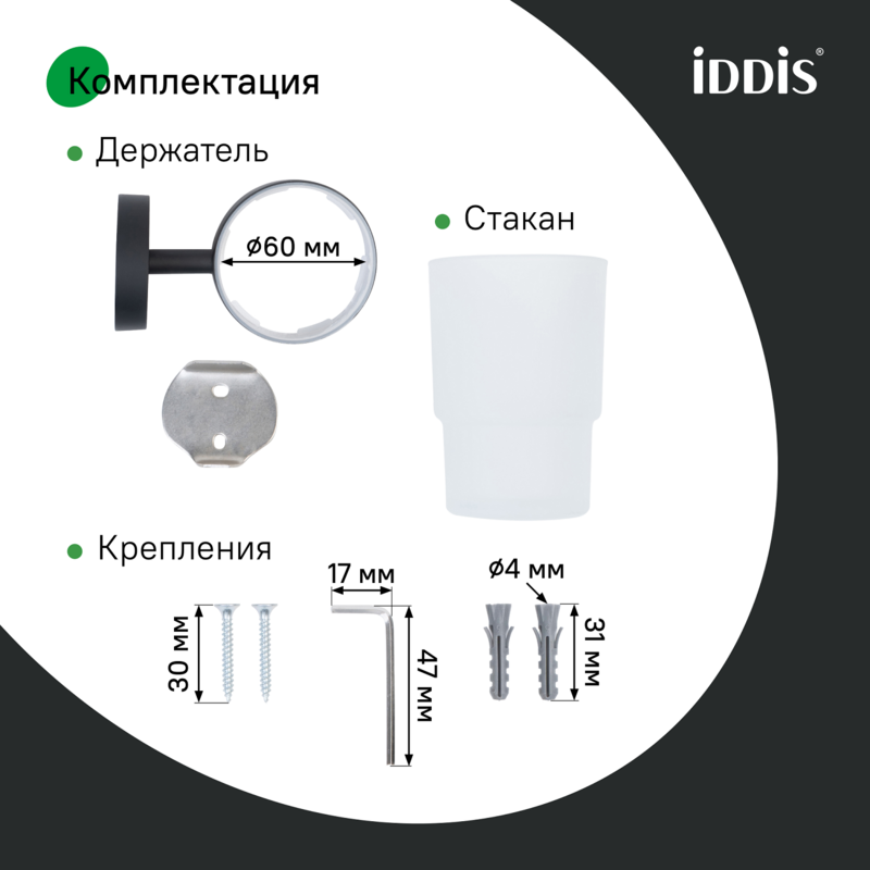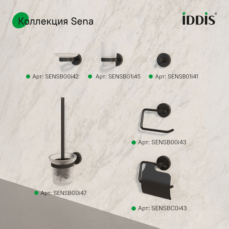 Стакан Sena из матового белого стекла в держателе-подстаканнике чёрного матового цвета – доступное функциональное решение для современной ванной комнаты. Sena – коллекция настенных аксессуаров с понятным базовым дизайном, который подойдёт к абсолютно любому интерьеру. Идеально дополнят смесители и сантехнику IDDIS® в тон. Основной материал – сплав металлов с надёжным порошковым окрашиванием, стойким к бытовой химии и механическим повреждениям, что позволяет эксплуатировать аксессуары во влажном помещении ванной на протяжении длительного времени. Стакан из матового стекла легко вынимается из держателя, и её просто промыть. Уплотнительная прокладка надёжно фиксирует стакан в держателе и предотвращает его повреждение. Стакан в подстаканнике удобен в установке, монтаж не требует профессиональных навыков. Крепёжные элементы скрыты корпусом, что обеспечивает привлекательный и аккуратный внешний вид. Крепёж выдерживает вес до 5 кг. Конструкция крепежа позволяет немного скорректировать расстояние между отверстиями для саморезов, благодаря чему можно закрепить стакан в уже существующих отверстиях в плитке и не сверлить новые. Гарантия на аксессуары для ванной IDDIS® – 5 лет. (с) Авторский текст, октябрь 2025 г.