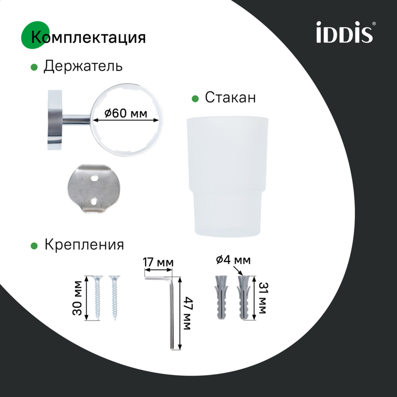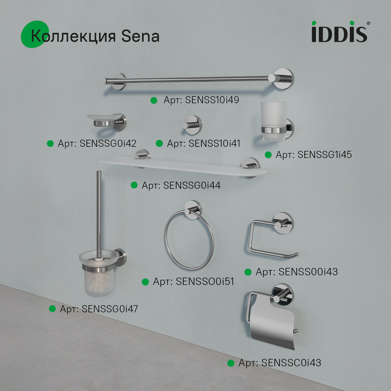 Стакан Sena из матового белого стекла в хромированном держателе-подстаканнике – доступное функциональное решение для современной ванной комнаты. Sena – коллекция настенных аксессуаров с понятным базовым дизайном, который подойдёт к абсолютно любому интерьеру. Идеально дополнят смесители и сантехнику IDDIS® в тон. Основной материал – сплав металлов с надёжным порошковым окрашиванием, стойким к бытовой химии и механическим повреждениям, что позволяет эксплуатировать аксессуары во влажном помещении ванной на протяжении длительного времени. Стакан из матового стекла легко вынимается из держателя, и её просто промыть. Уплотнительная прокладка надёжно фиксирует стакан в держателе и предотвращает его повреждение. Стакан в подстаканнике удобен в установке, монтаж не требует профессиональных навыков. Крепёжные элементы скрыты корпусом, что обеспечивает привлекательный и аккуратный внешний вид. Крепёж выдерживает вес до 5 кг. Конструкция крепежа позволяет немного скорректировать расстояние между отверстиями для саморезов, благодаря чему можно закрепить стакан в уже существующих отверстиях в плитке и не сверлить новые. Гарантия на аксессуары для ванной IDDIS® – 5 лет. (с) Авторский текст, октябрь 2025 г.
