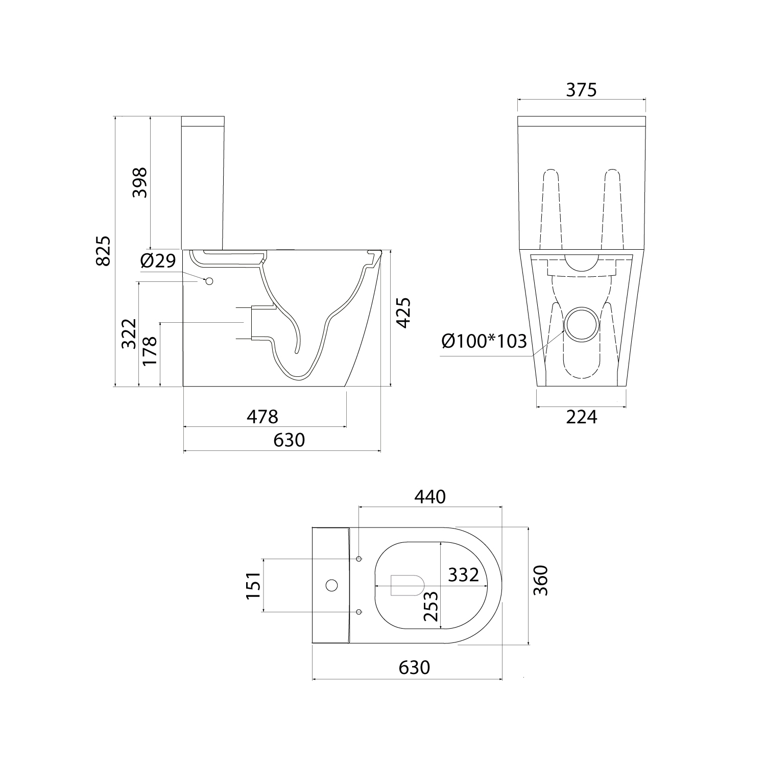 | Метод установки водосливного бачка: | Поверх унитаза |