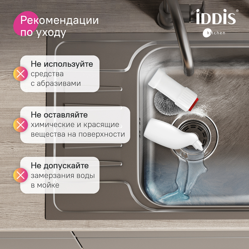 Мойка Sound – функциональность и актуальный дизайн, который подойдет почти к любой кухне. Крыло удобно использовать для сушки столовых приборов. Для шкафа от 45 см. • Устанавливается сверху в столешницу (вырез под мойку составляет 585х420хR20 мм). Подстольный монтаж не предусмотрен. Мойка оборачиваемая: крыло можно повернуть налево или направо. • Мойка из качественной нержавеющей стали AISI 304 толщиной 0,8 мм; сталь содержит 18% хрома и 8% никеля, что надежно защищает ее от коррозии. Стойкая к износу, выдерживает различные t, легко моется, долго служит. При правильном уходе надолго сохранит привлекательный внешний вид. • Текстура с эффектом шелковой поверхности благодаря специальной обработке. • Специальное антишумовое покрытие и полимерные накладки на обороте снижают шум при использовании. • Все необходимое для монтажа в комплекте: сифон, крепеж и шаблон для выреза в столешнице, эластичная уплотнительная лента для защиты от протечек. Гарантия на мойки IDDIS® – 15 лет, на крепления – 1 год. (с) Авторский текст, декабрь 2025 г.