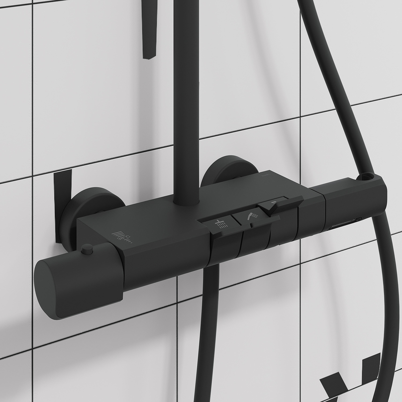 Современная душевая система SpaHome в трендовом черном цвете, где собраны топовые технологии для самого комфортного принятия душа и ванны: клавишное управление, термостат, тропический верхний душ, большая ручная лейка, излив. • Термостат поддерживает выбранный температурный режим, что важно для безопасности детей и пожилых людей. Плюс настроив температуру один раз, не придется сливать лишние литры и платить за них. • 3 выхода для воды: излив, верхняя лейка, ручная лейка. Каждый из них включается мягким нажатием клавиши – как по отдельности, так и одновременно. • Напор воды регулируется той же клавишей: чем ниже опущена клавиша, тем он сильнее. • Скрытый в корпусе излив позволит наполнить ванну или набрать емкость с водой. • Минималистичный дизайн смотрится лаконично и стильно. • В комплекте: верхняя лейка 260х260х65 мм, ручная лейка с 3 режимами 270х125 мм, гладкий душевой шланг 1,5 м. Гарантия на смеситель – 10 лет, на душевые аксессуары – 3 года. (с) Авторский текст, сентябрь 2023 г.