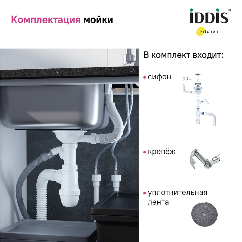 Strit – популярная коллекция невероятно удобных кухонных моек различной функциональности. Мойки Strit отличает широкий модельный ряд. Модель с 1 чашей подходит к любому гарнитуру или тумбе от 45 см. Мойка оборудована компактным крылом с геометричным узором. На нем будет удобно размораживать продукты и сушить столовые приборы. Мойка Strit с полированной поверхностью проходит несколько этапов обработки, что позволяет получить красивый зеркальный блеск. Полированная мойка гармонично дополнит хромированные аксессуары на кухне. • Мойка из качественной нержавеющей стали AISI 304; сталь содержит 18% хрома и 8% никеля, что надежно защищает ее от коррозии. Стойкая к износу, выдерживает различные t, легко моется, долго служит. При правильном уходе надолго сохранит привлекательный внешний вид. • Специальное антишумовое покрытие и полимерные накладки на оборотной стороне чаши снижают шум при использовании мойки. • Монтаж кухонной мойки IDDIS® максимально удобен и универсален. Она устанавливается сверху в столешницу – крылом налево или направо. • Все необходимое для монтажа в комплекте: сифон, крепеж и шаблон для выреза в столешнице, эластичная уплотнительная лента, которая защитит периметр мойки от протечек. Гарантия на мойку Strit – 15 лет, на крепления и сифон – 1 год. (с) Авторский текст, апрель 2022 г.
