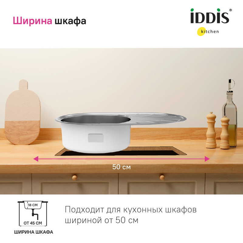 Мойка Suno для тех, кто предпочитает классику: округлые очертания чаши и эстетичный веерообразный узор крыла. Отлично подойдет для небольших кухонь, где на счету каждый рабочий сантиметр. На вместительном крыле удобно сушить столовые приборы. Имеет текстуру с эффектом шелковой поверхности благодаря специальной обработке стали. Подходит к тумбе от 50 см. • Мойка из качественной нержавеющей стали 304 толщиной 0,8 мм; сталь содержит 18% хрома и 8% никеля, что надежно защищает ее от коррозии. Стойкая к износу, выдерживает различные t, легко моется, долго служит. При правильном уходе надолго сохранит привлекательный внешний вид. • Специальное антишумовое покрытие и полимерные накладки на обороте чаши снижают шум при использовании. • Монтаж максимально удобен и универсален: мойка устанавливается сверху в столешницу врезным способом (вырез под мойку составляет 460х750хR230 мм), крылом налево или направо. Подстольный монтаж не предусмотрен. • Все необходимое для монтажа в комплекте: крепеж, шаблон для выреза в столешнице, эластичная уплотнительная лента для защиты от протечек. Сифон приобретается отдельно. Рекомендуем использовать сифон с выпуском 3.1/2"x 40 мм с переливом и отводом, арт.: 900CVG1P10VD или сифон с выпуском 3.1/2"x 40 мм с переливом, арт.: 900CVG0P10VD. • Гарантия на мойку Suno – 15 лет. (с) Авторский текст, декабрь 2025 г.
