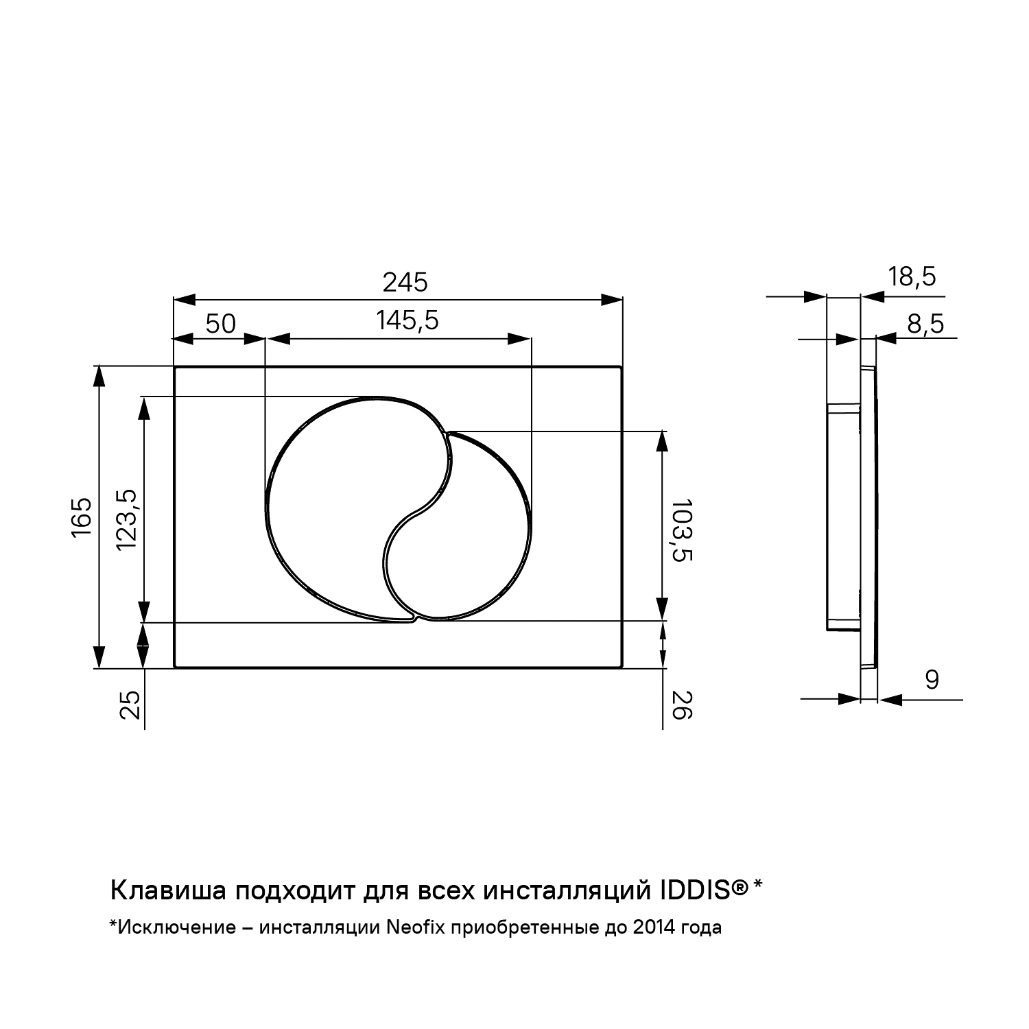 Черная клавиша IDDIS® Unifix составит базовый комплект с подвесной сантехникой – изделие совместимо со всеми моделями инсталляций IDDIS®. Оригинальная форма кнопок в виде символа гармонии создает выразительный дизайн, который будет стильно смотреться практически в любом интерьере. Плоская и эстетичная клавиша смыва займет пространство размером не более ежедневника (24,5 на 16,5 см). Она легко монтируется и снимается для удобного доступа к крану открытия-закрытия воды и обслуживания арматуры. Для данной модели доступно несколько цветовых решений. • На матовой поверхности клавиши IDDIS® не остаются следы пальцев, что значительно упрощает уборку. • Клавиша смыва IDDIS® прослужит дольше благодаря прочному и износостойкому пластику и надежному креплению рамки на шурупы. • Технология двухрежимного смыва (малым или большим объемом) обеспечивает ощутимую экономию потребления воды. • Гарантия на все клавиши IDDIS® – 3 года. (с) Авторский текст, январь 2022 г.