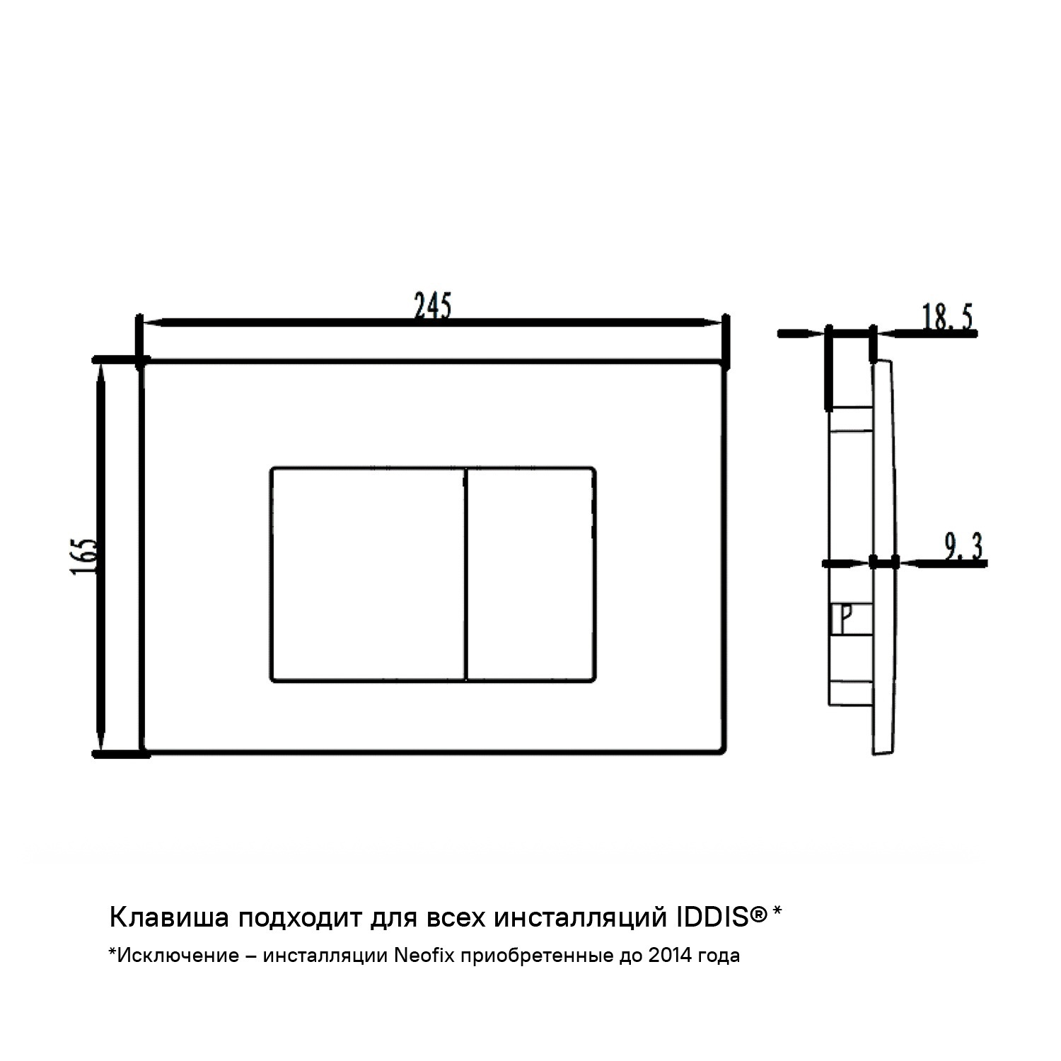 Хромированная клавиша IDDIS® Unifix составит базовый комплект с подвесной сантехникой – подходит ко всем инсталляциям IDDIS®, кроме инсталляции Neofix в модификации, продававшейся до 2014 года (см. на фото). В ней ничего лишнего: только минималистичный дизайн и большие прямоугольные кнопки. Плоская и эстетичная клавиша легко монтируется и снимается для удобного доступа к крану открытия-закрытия воды и обслуживания арматуры. Модель представлена в нескольких цветовых решениях. • На матовой поверхности клавиши IDDIS® не остаются следы пальцев, что значительно упрощает уборку. • Клавиша смыва IDDIS® прослужит дольше благодаря прочному и износостойкому пластику и надежному креплению рамки на шурупы. • Технология двухрежимного смыва (малым или большим объемом) обеспечивает ощутимую экономию потребления воды. Гарантия на все клавиши IDDIS® – 3 года. (с) Авторский текст, октябрь 2025 г.