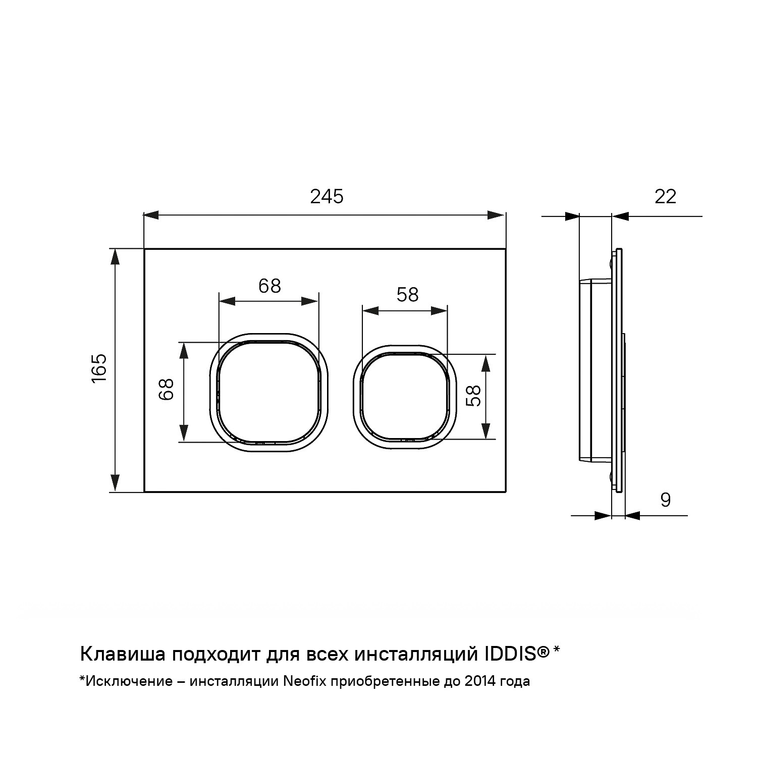 Черная клавиша IDDIS® Unifix составит базовый комплект с подвесной сантехникой – подходит ко всем инсталляциям IDDIS®, кроме инсталляции Neofix в модификации, продававшейся до 2014 года (см. на фото). Хромированный контур квадратных кнопок выступает ярким акцентом, превращая функциональный продукт в стильный аксессуар. Плоская и эстетичная клавиша легко монтируется и снимается для удобного доступа к крану открытия-закрытия воды и обслуживания арматуры. Данная модель представлена в нескольких цветовых сочетаниях. • На матовой поверхности клавиши IDDIS® не остаются следы пальцев, что значительно упрощает уборку. • Клавиша смыва IDDIS® прослужит дольше благодаря прочному и износостойкому пластику и надежному креплению рамки на шурупы. • Технология двухрежимного смыва (малым или большим объемом) обеспечивает ощутимую экономию потребления воды. Гарантия на все клавиши IDDIS® – 3 года. (с) Авторский текст, октябрь 2025 г.